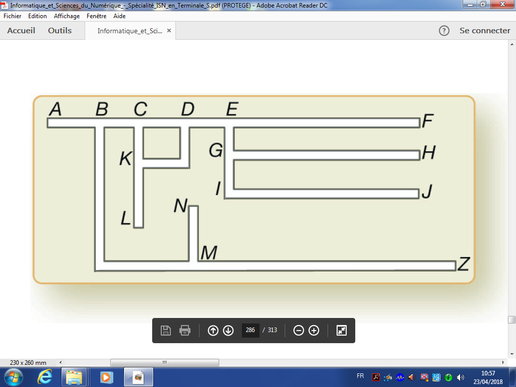 Conclusion : le parcours en largeur permet de trouver le chemin le plus court pour sortir ; le parcours en profondeur, pour ne pas tourner en rond, doit interdire de repasser par des sommets déjà utilisés.